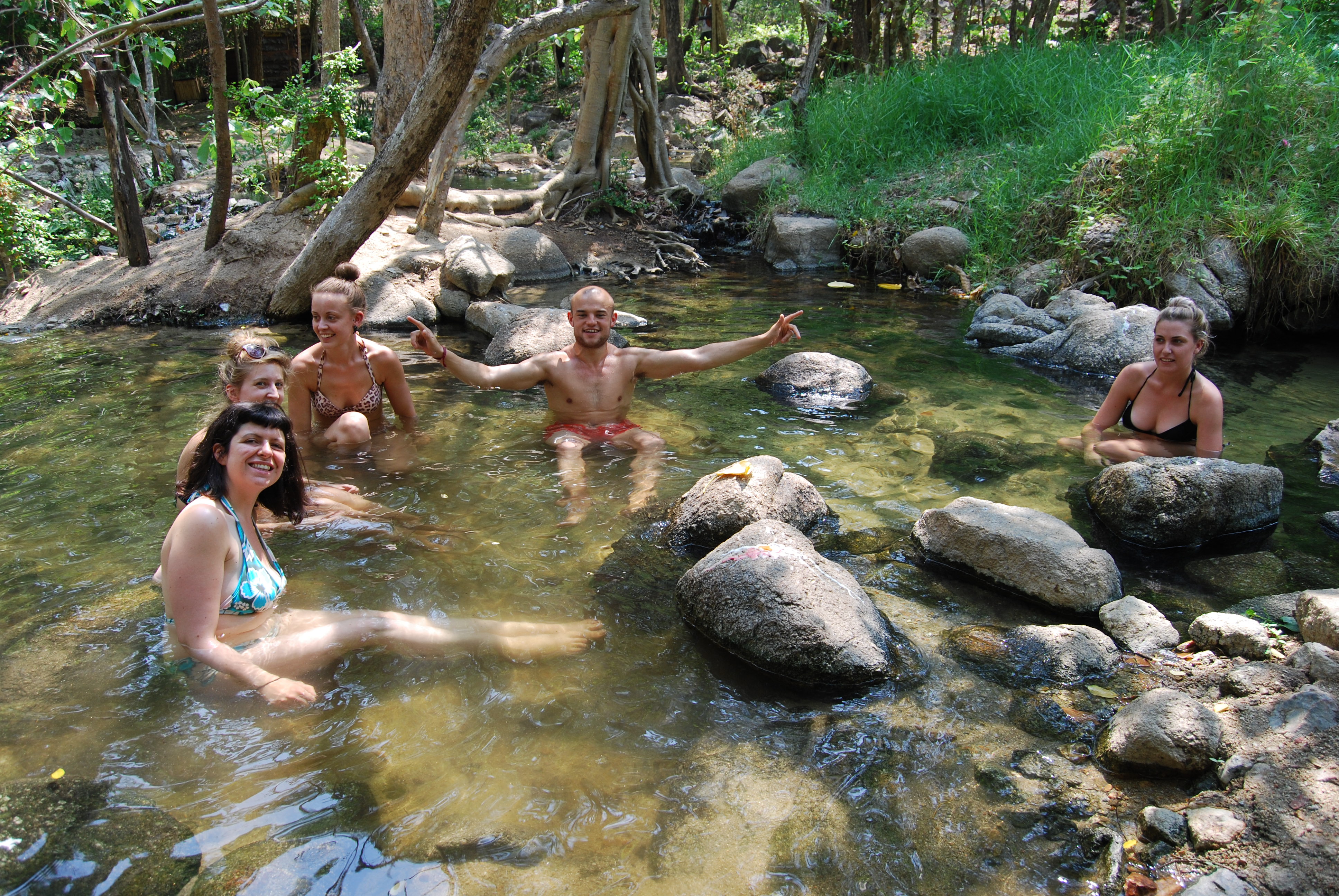 We also went to the hot springs of Pai. At the highest point of the hot spring, the water is so hot, that you can boil an egg in it. The hot springs gradually go down like a waterfall, and so does the temperature. The mineral bath has the perfect temperature. You can compare it with taking a hot bath outdoors. With a little breese, it is bliss.