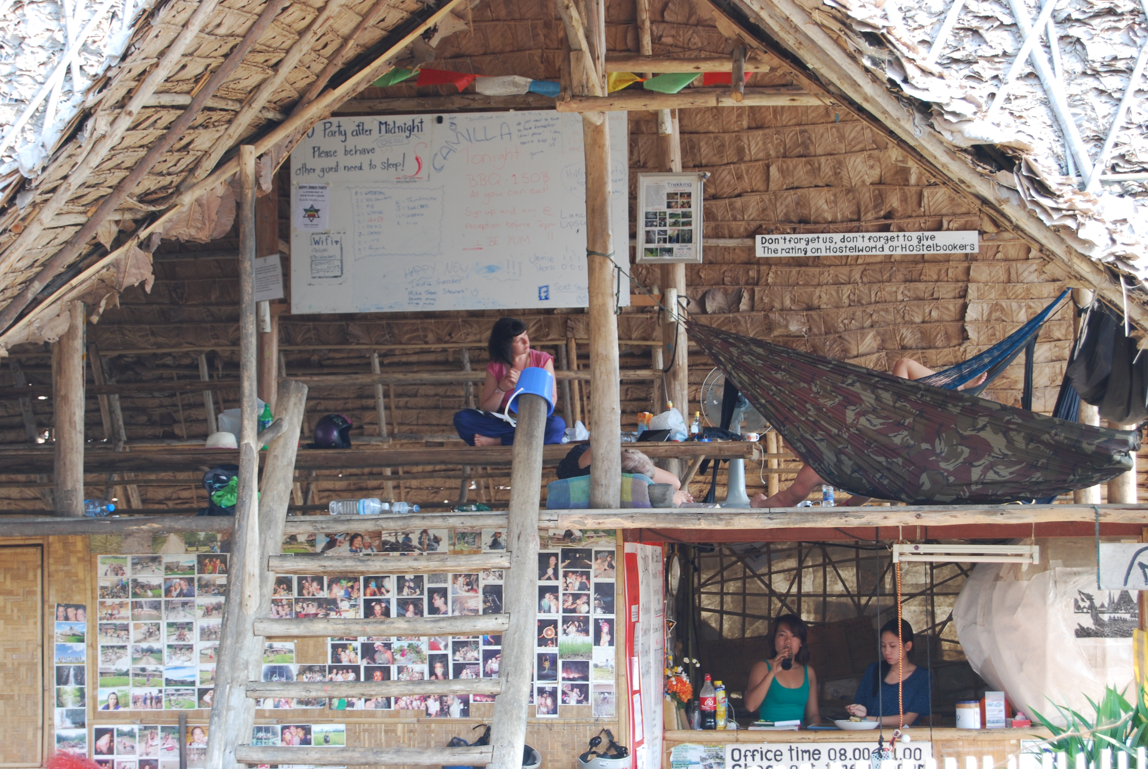 De herberg waar ik verbleef is geweldig. Het bestaat uit rieten bungalows met een centraal paviljoen met hangmatten.  Ik deelde een bungalow met drie meisjes waaronder Ellie en Jade (twee Engelse meisjes die ook voor lange tijd aan het rondtrekken zijn) en Cassie (ook een Engelse die net twee jaar les heeft gegeven in Japan en nu ook gaat rondtrekken door Azië en Australië).  Omdat het er zo rustig en mooi was én door het leuke gezelschap, besloot ik om er drie dagen te blijven.