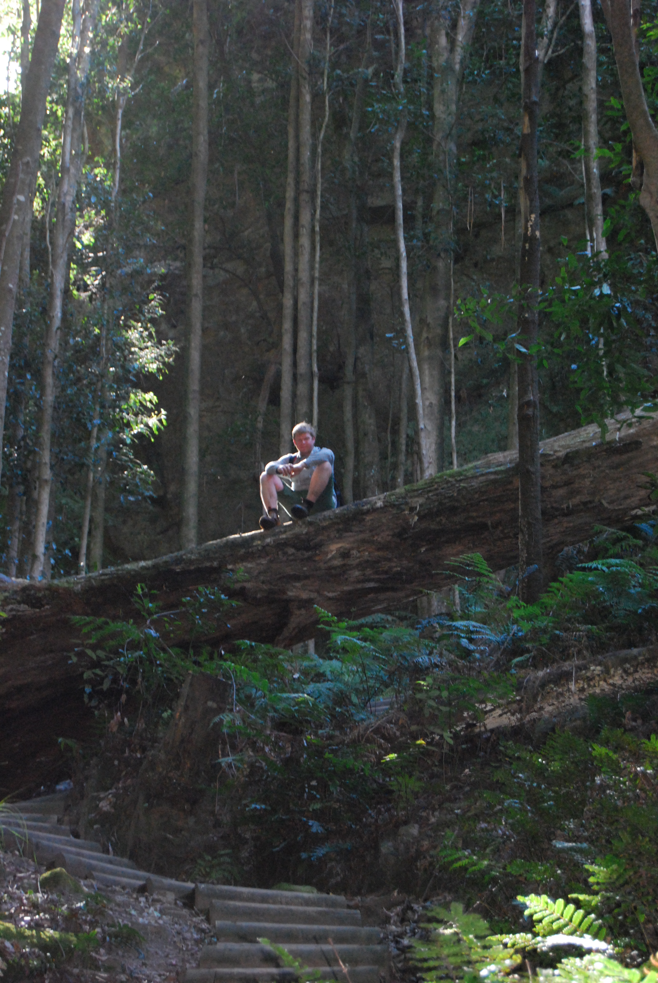 Mijn tweede week in Sydney is voorbij gevlogen. Ik heb een druk schema met m’n twee baantjes. Elke dag ben ik aan het werk in de drukkerij of in het hostel. Maar het is leuk om bezig te zijn. Natuurlijk heeft een mens ook ontspanning nodig. Daarom ben ik samen met de Argentijnse Florencia, de Amerikaan Michael en de Brit Mark naar Blue Mountains National Park geweest. Notitie aan mezelf:  neem volgende keer ten minste één groepsfoto geschikt voor publicatie. Vanuit Sydney hebben we de trein genomen tot het stadje Katoomba. Van Echo Point heb je een mooi uitzicht op de Three sisters en dat was ook het vertrekpunt van onze boswandeling.