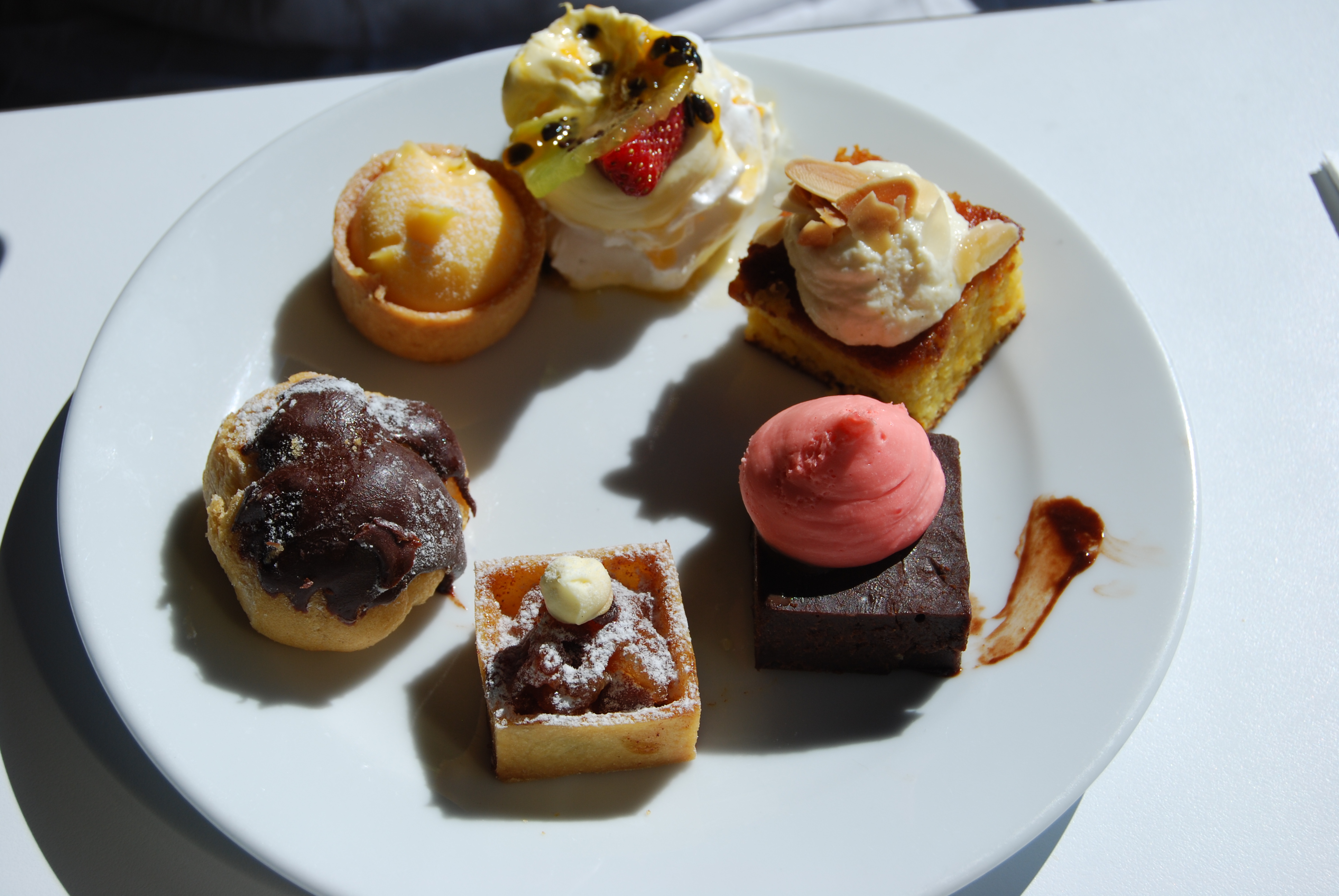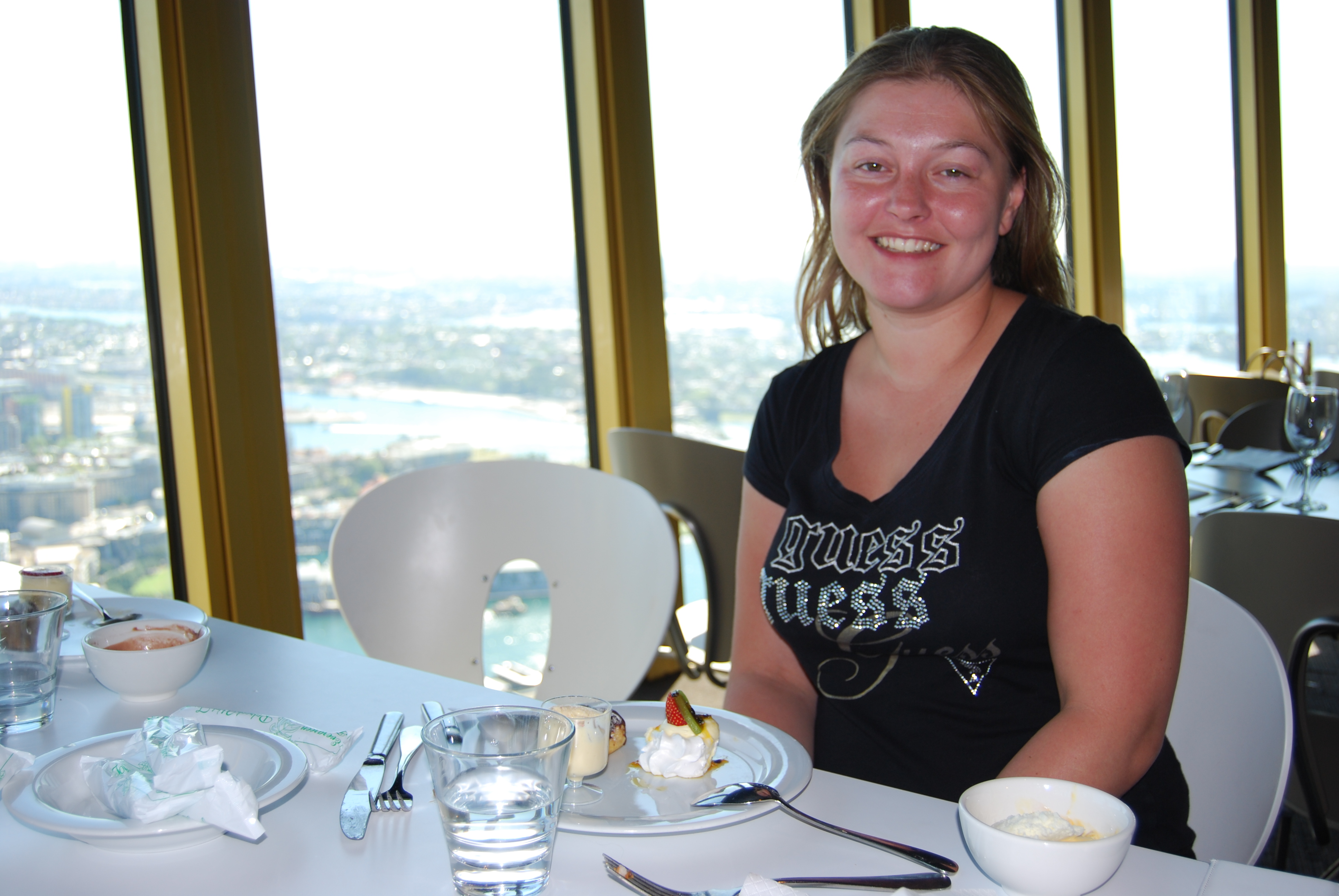 Met de meiden, Tamara uit Nederland en Vanessa uit Duitsland, gaan lunchen in de Westfield toren. Dit is letterlijk een hoogtepunt (309 meter) boven Sydney. En het restaurant roteert. Zo heb je, tijdens het eten, steeds uitzichten op andere delen van de stad. De lunch bestaat uit een uitgebreid buffet en kost 55 Australische dollar (38 euro). Het eten is niet echt haute cuisine maar de desserts waren smullen. Het duurt een uur voordat je 360° rond de stad bent gecirkeld. Daarna nog een extra rondje gemaakt om het eten te laten zakken en te genieten van de stad.