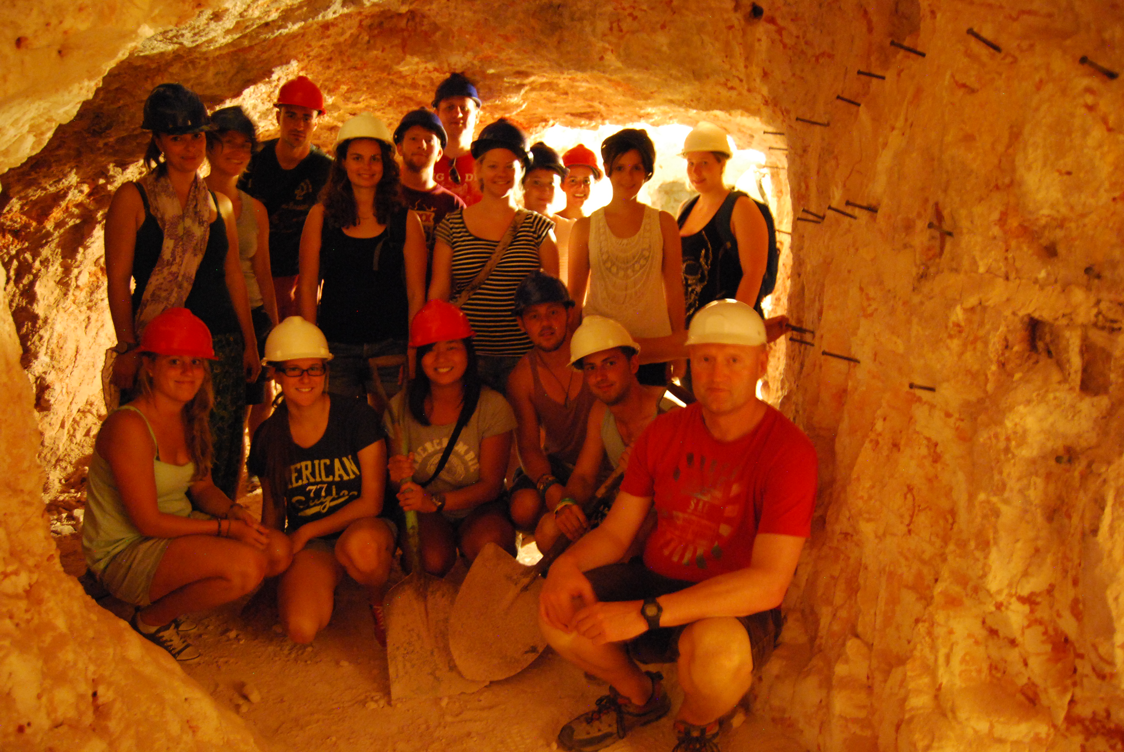 De tweede dag bezoeken we Coober Pedy. Dit is een mijnstadje in de woestijn waar ze Opal opgraven.Omdat het zo heet is, bouwen de mensen hun huizen ondergronds. Vandaag is het hier 41°. Gelukkig slapen we ook ondergronds waar het fris en koel is.