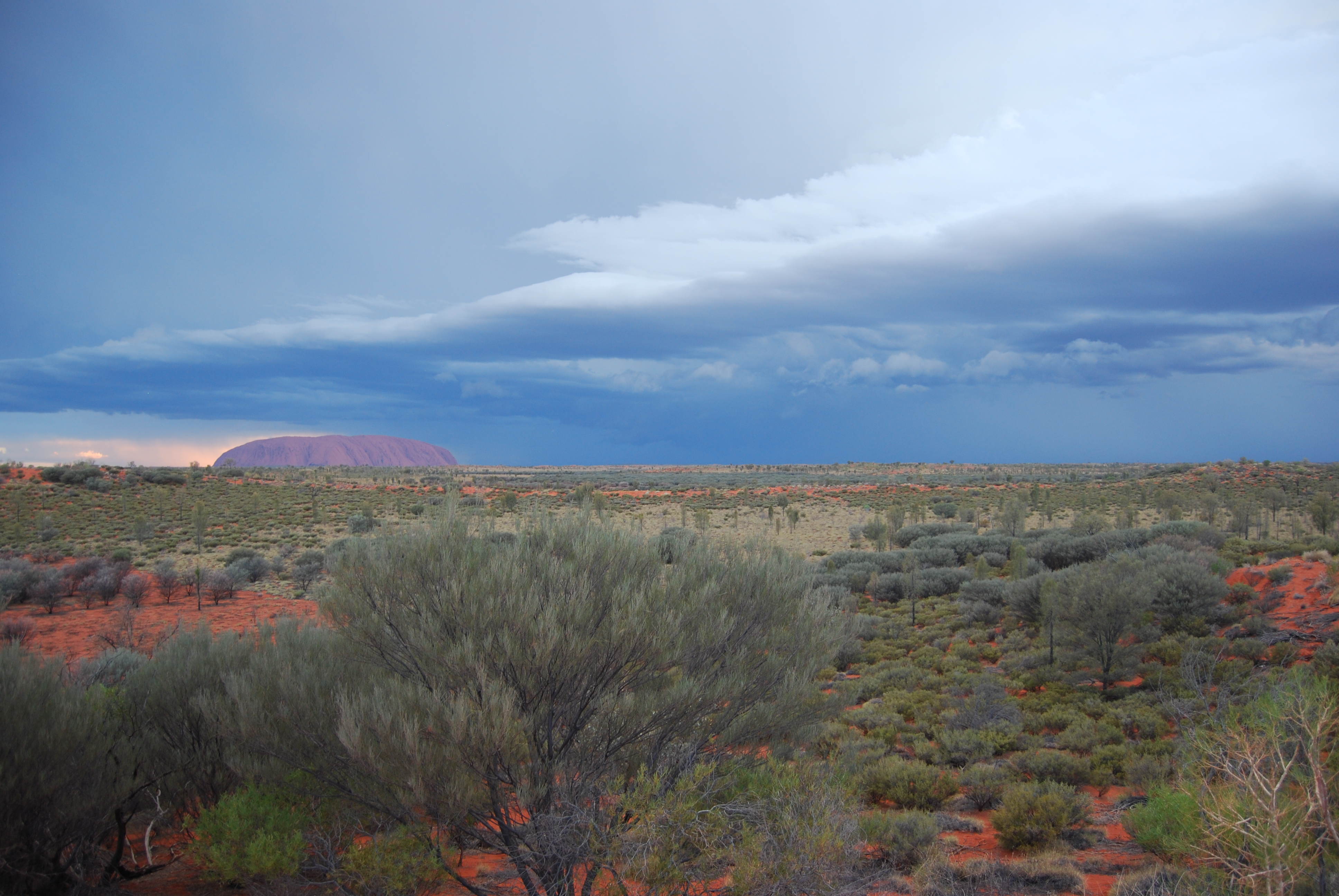 Op dag drie rijden we naar Uluru, de heilige rots van de Aboriginals. We zetten ons kamp op en gaan naar de zonsondergang kijken bij de rots. We zien de zon niet ondergaan want het bliksemt en dondert boven Uluru. Heel bijzonder want het regent hier maar veertien dagen per jaar.