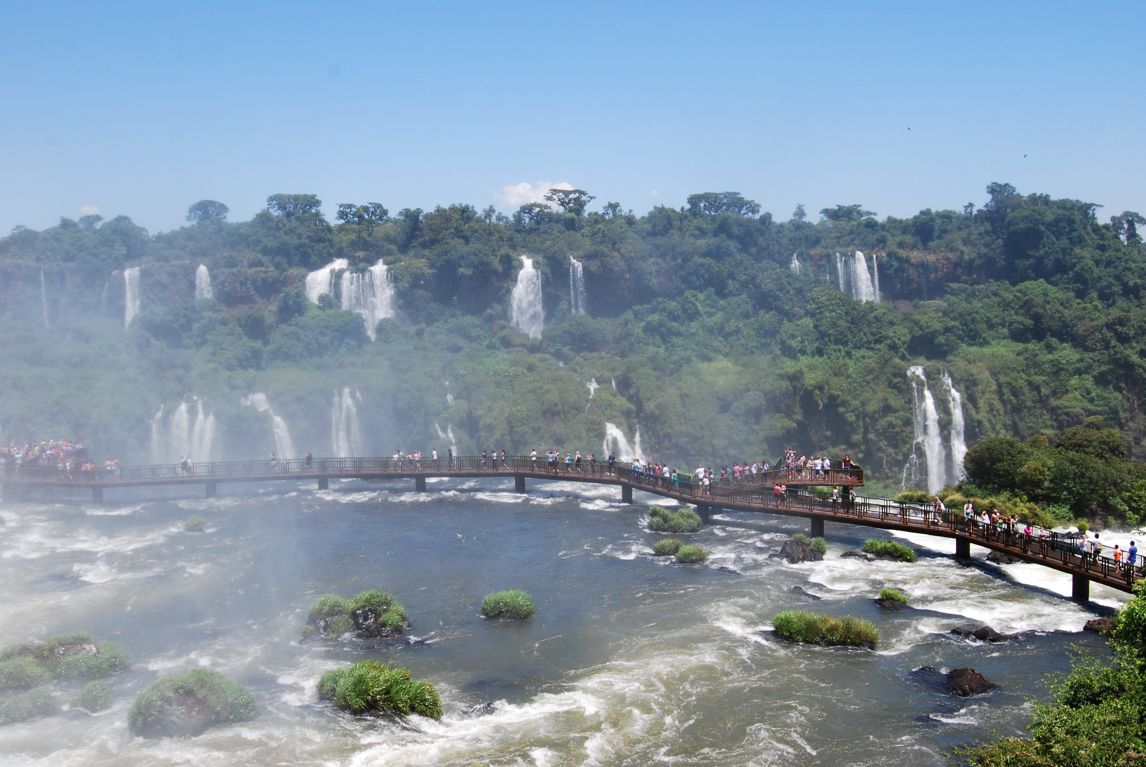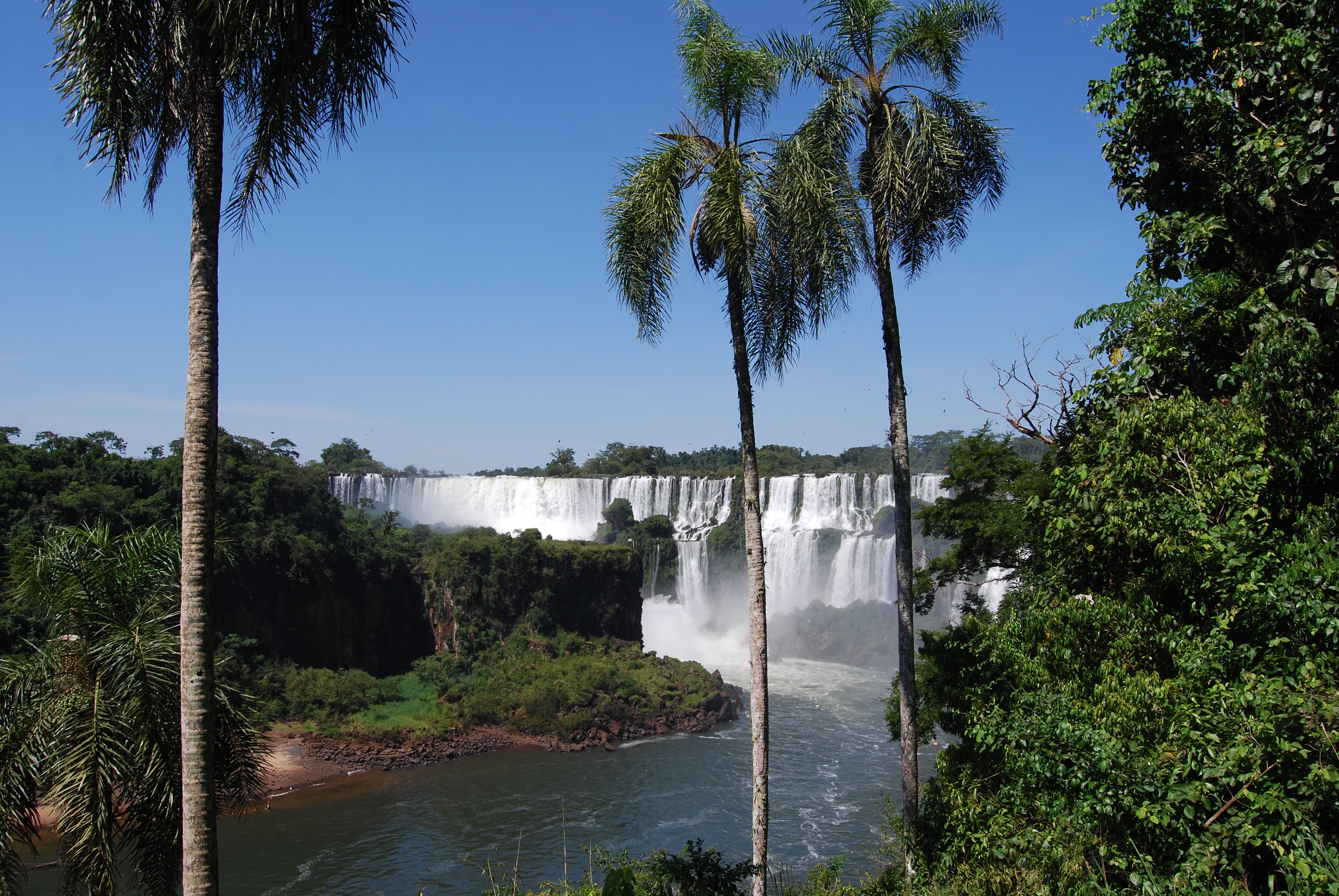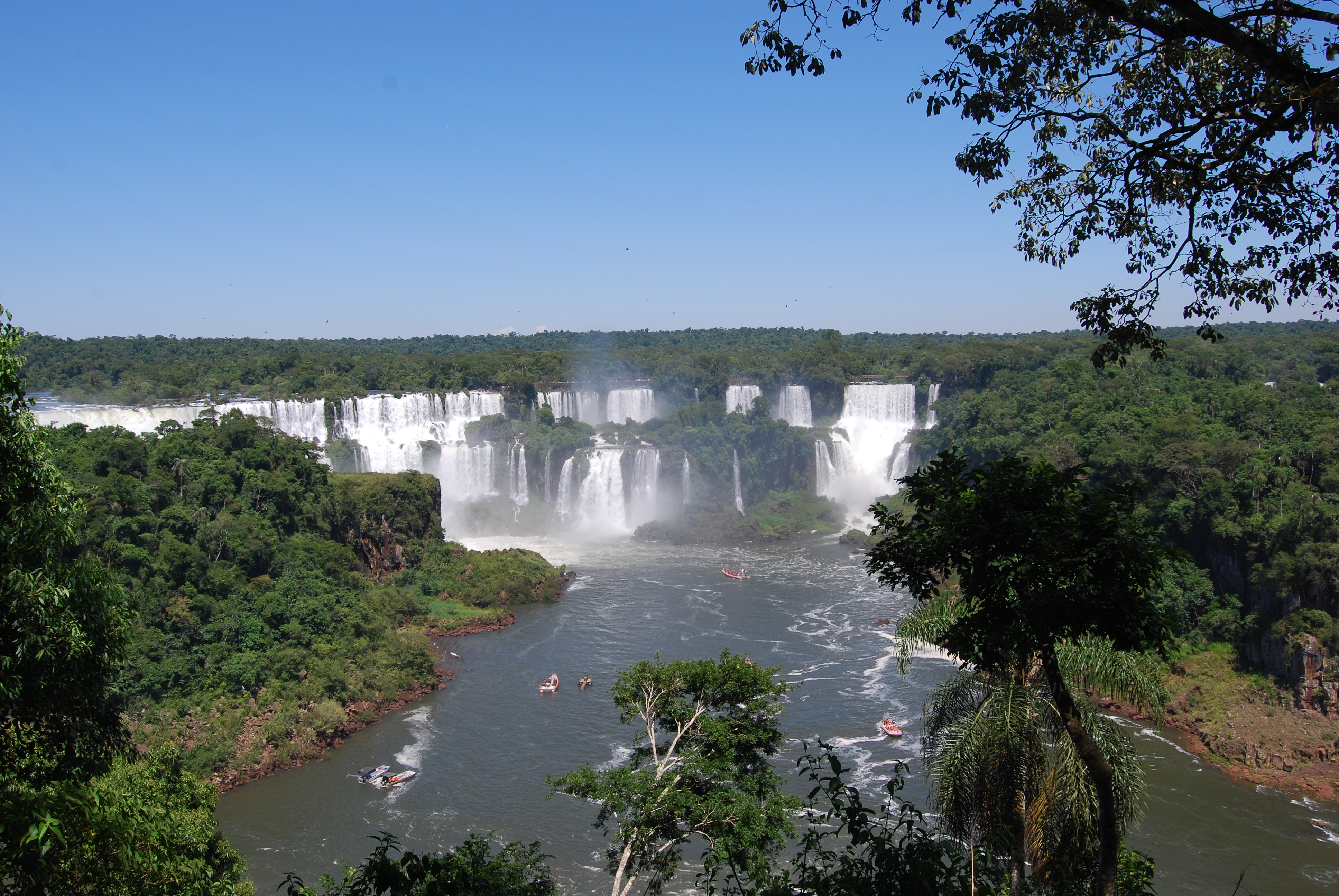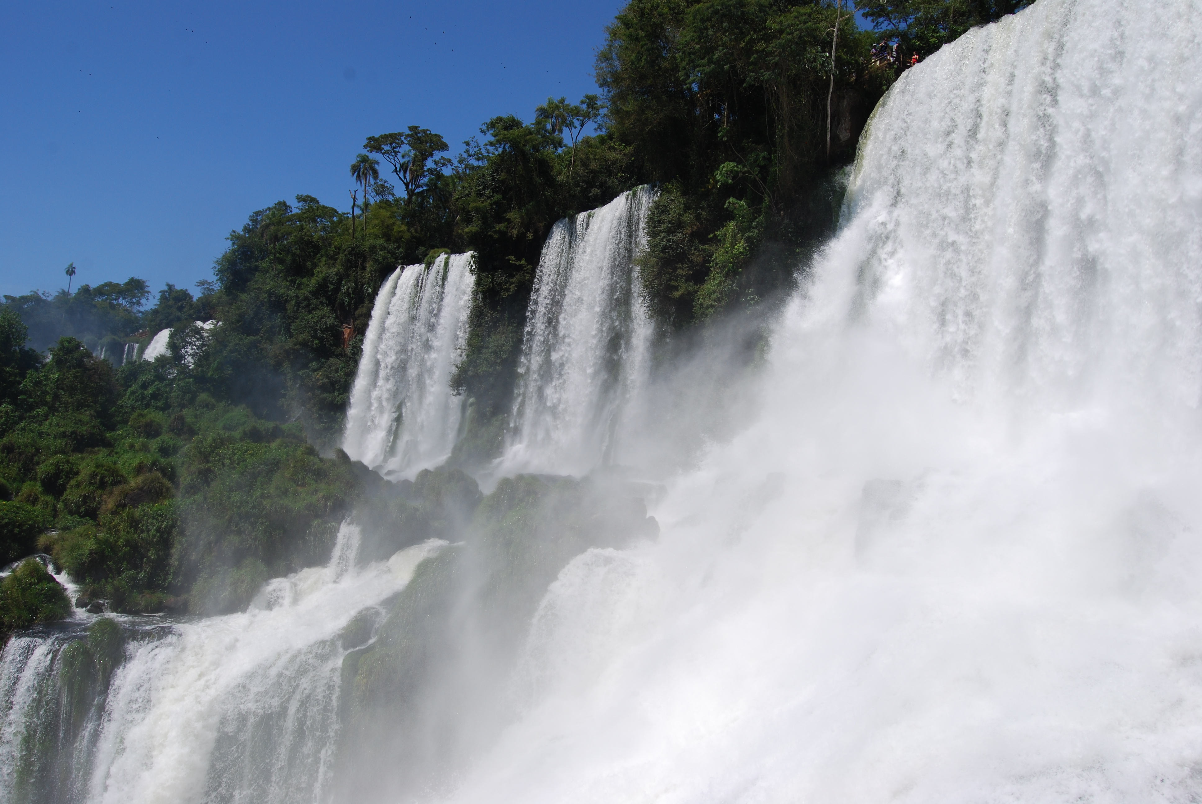 Na mijn aankomst in Puerto Iguazu, de poort tot het Parque Nacional Iguazu, ben ik meteen een taxi ingesprongen met de Australiërs Nick en Sally om de Braziliaanse kant van de Iguazu watervallen te bekijken. Een gedeelde taxi heen en terug (250 Peso’s) kost niet veel meer dan een bus. De chauffeur regelt de grensovergang en wacht keurig aan de ingang van het park om je vervolgens terug te brengen. De Braziliaanse zijde is indrukwekkend door het overzicht op de watervallen. De volgende dag heb ik met Sally de Argentijnse kant bezocht. Aan deze kant vond ik het boottochtje Nautical Adventure van Iguazu Jungle Explorer een aanrader. Een speedboatje brengt je tot vlak aan de de indrukwekkende Garganta del Diablo (de keel van de duivel) Canyon en een douche wacht aan de San Martin waterval, de tweede grootste waterval. Zeiknat ben je erna, maar door de hitte ben je een uur later alweer helemaal droog.