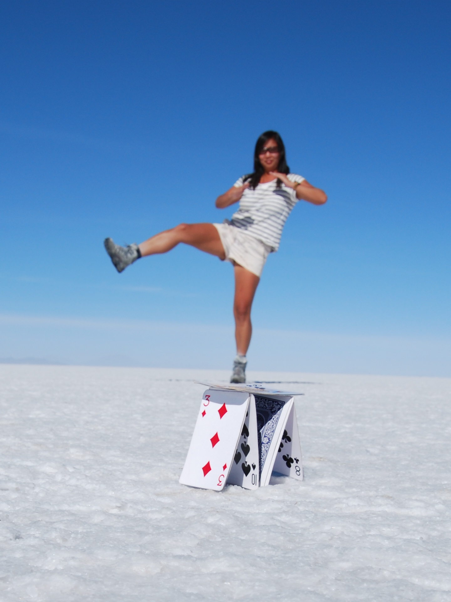 Ik reis sinds vorige week samen met Kelsey, een Amerikaans meisje. Haar heb ik ontmoet in Salta (Noord-Argentinië). We hebben dezelfde planning voor Bolivië en Peru. Daarom hebben we besloten om samen te reizen. Ons Boliviaans avontuur begon in Tupiza. Dit stadje was het startpunt van een vierdaagse tour door het Zuidwesten van Bolivië. We hebben duizend kilometer afgelegd over onverharde wegen in een Toyota Landcruiser. Het was geweldig. Het landschap veranderde voortdurend. Onderweg passeerden we bergen, vulkanen, lagunes, geisers, thermale baden en zagen we lama’s, vicuna’s, flamingo’s en condors. Het hoogtepunt was  Salar de Uyuni, ’s werelds grootste zoutvlakte. Overnachten deden we in een zouthotel waar de vloer, meubels en muren van zout zijn gemaakt. De trip eindigde in Uyuni met een kort bezoek aan het treinkerkhof.