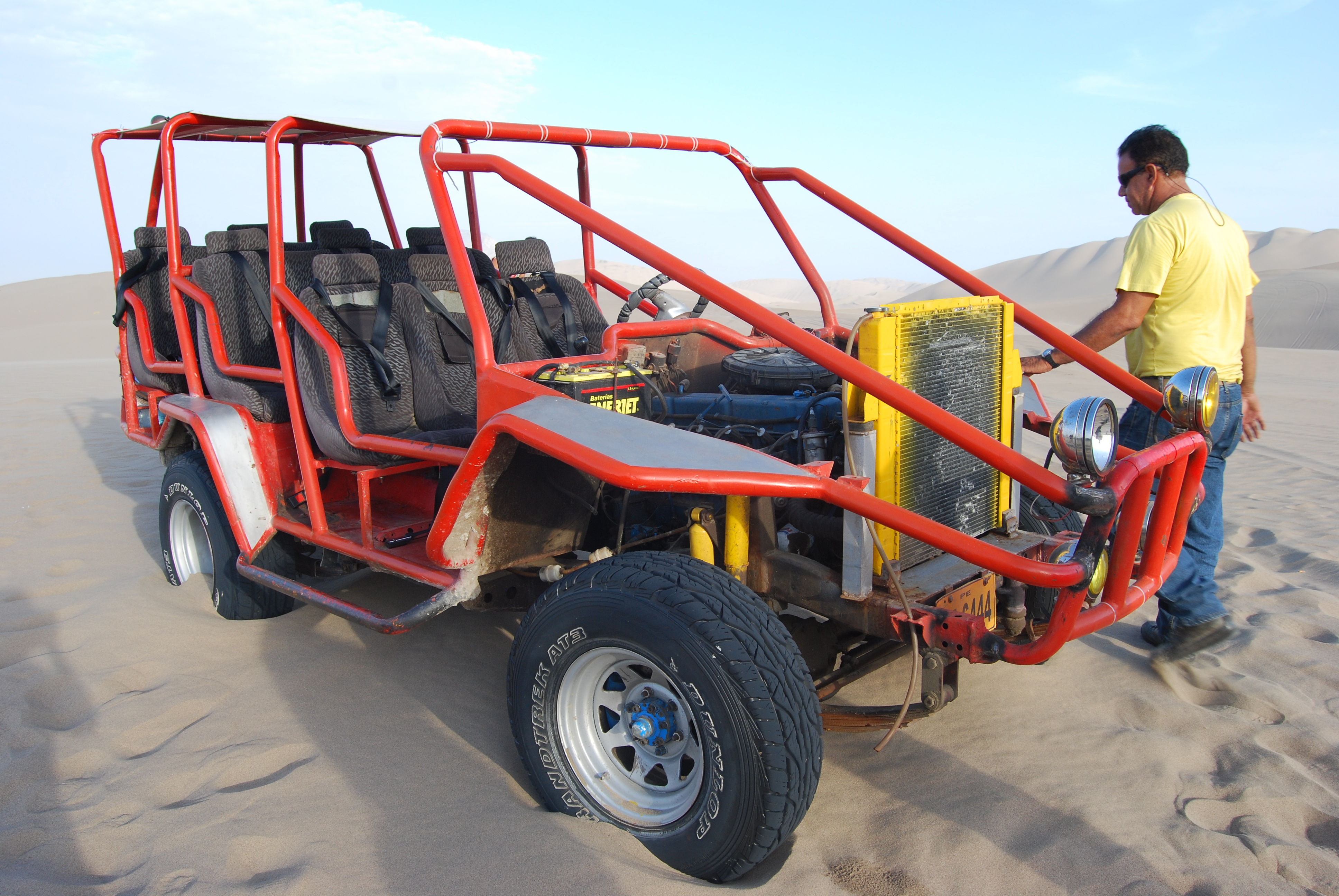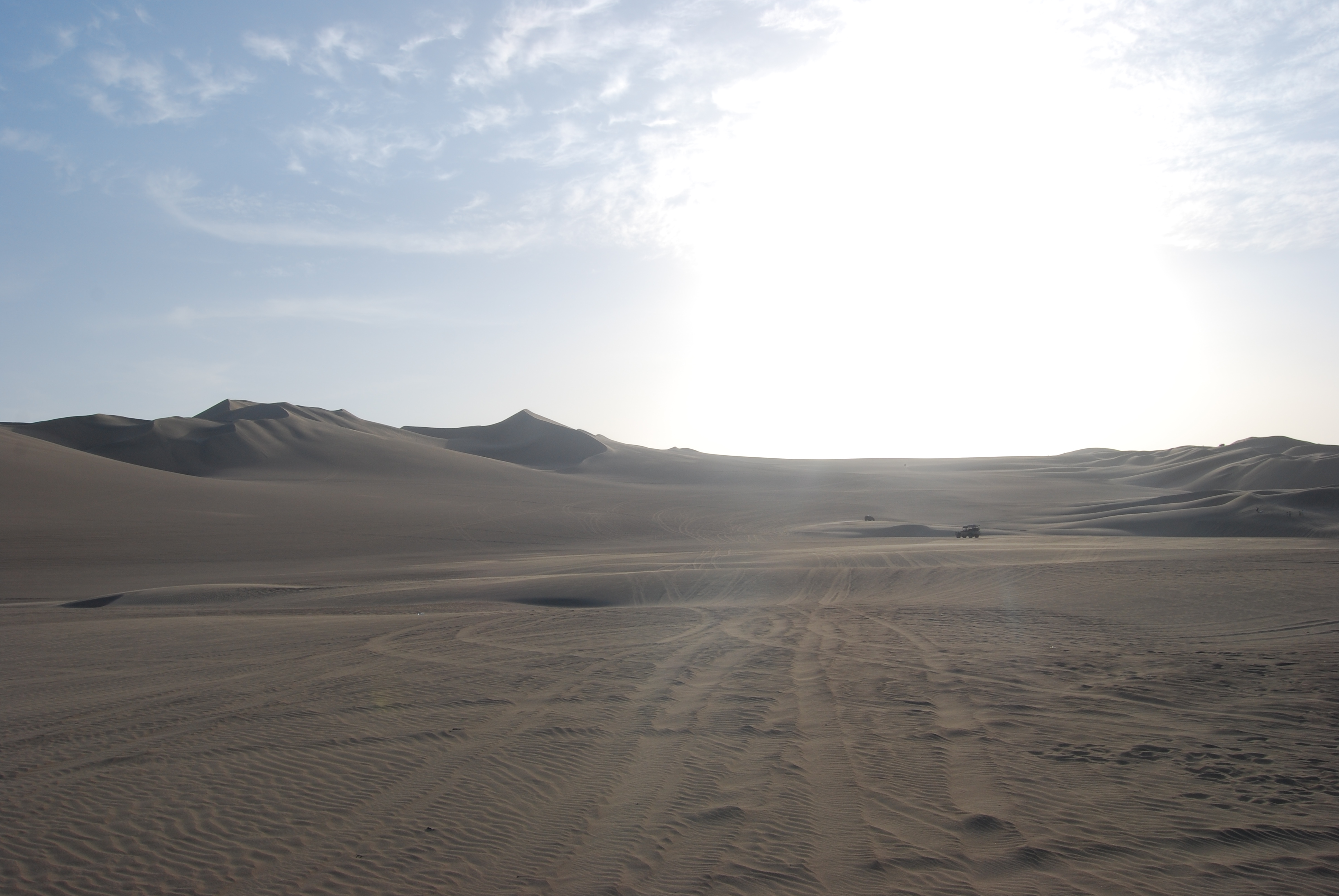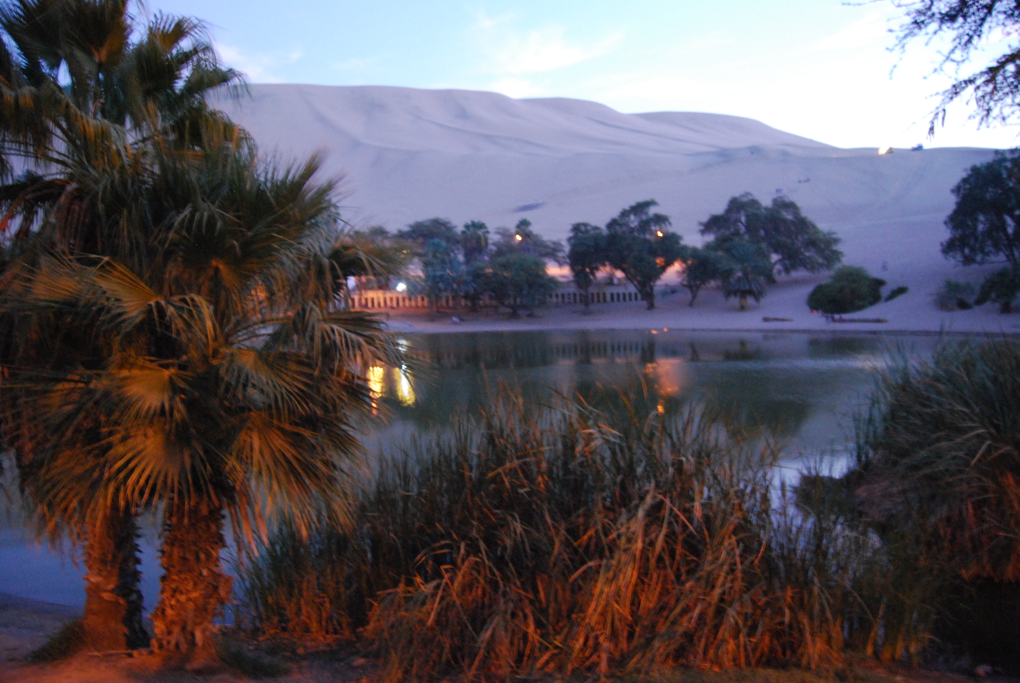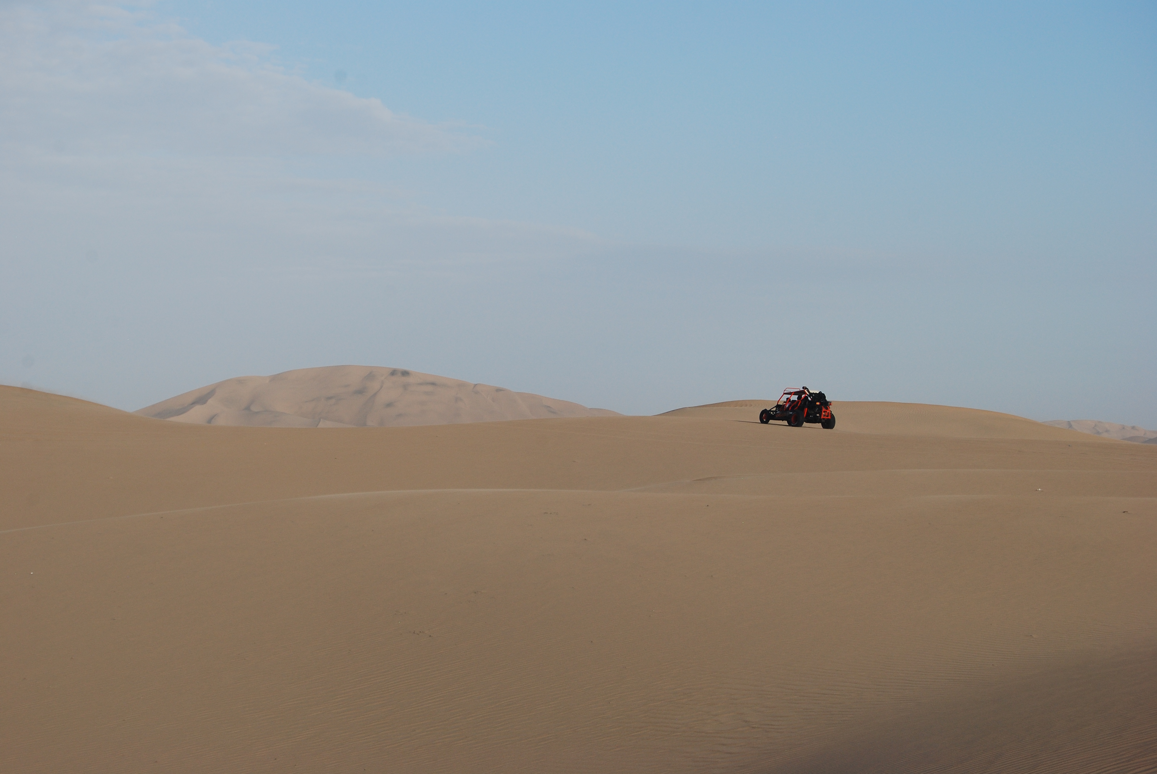 Het woestijndorp Huacachina (5 km van Ica) is gebouwd rondom een oasis en omgeven door enorme zandduinen. Er is niet erg veel te beleven behalve de buggy/sandboarding tour. De buggy brengt ons op een rollercoasterachtige manier naar de top van de duinen waarna we met snowboards naar beneden glijden. Zonsondergang is de beste tijd voor deze activiteit. De uitzichten zijn prachtig dan.