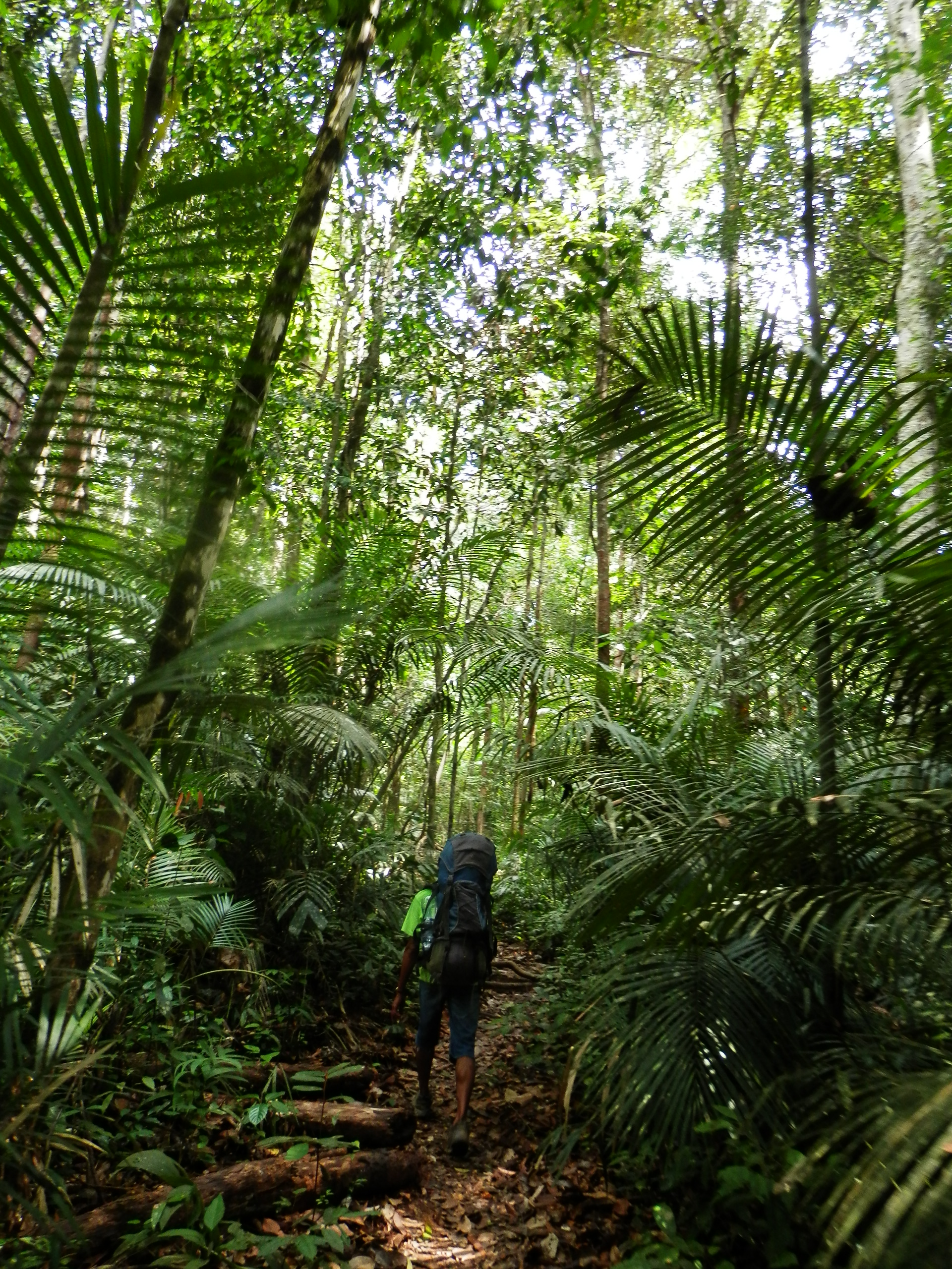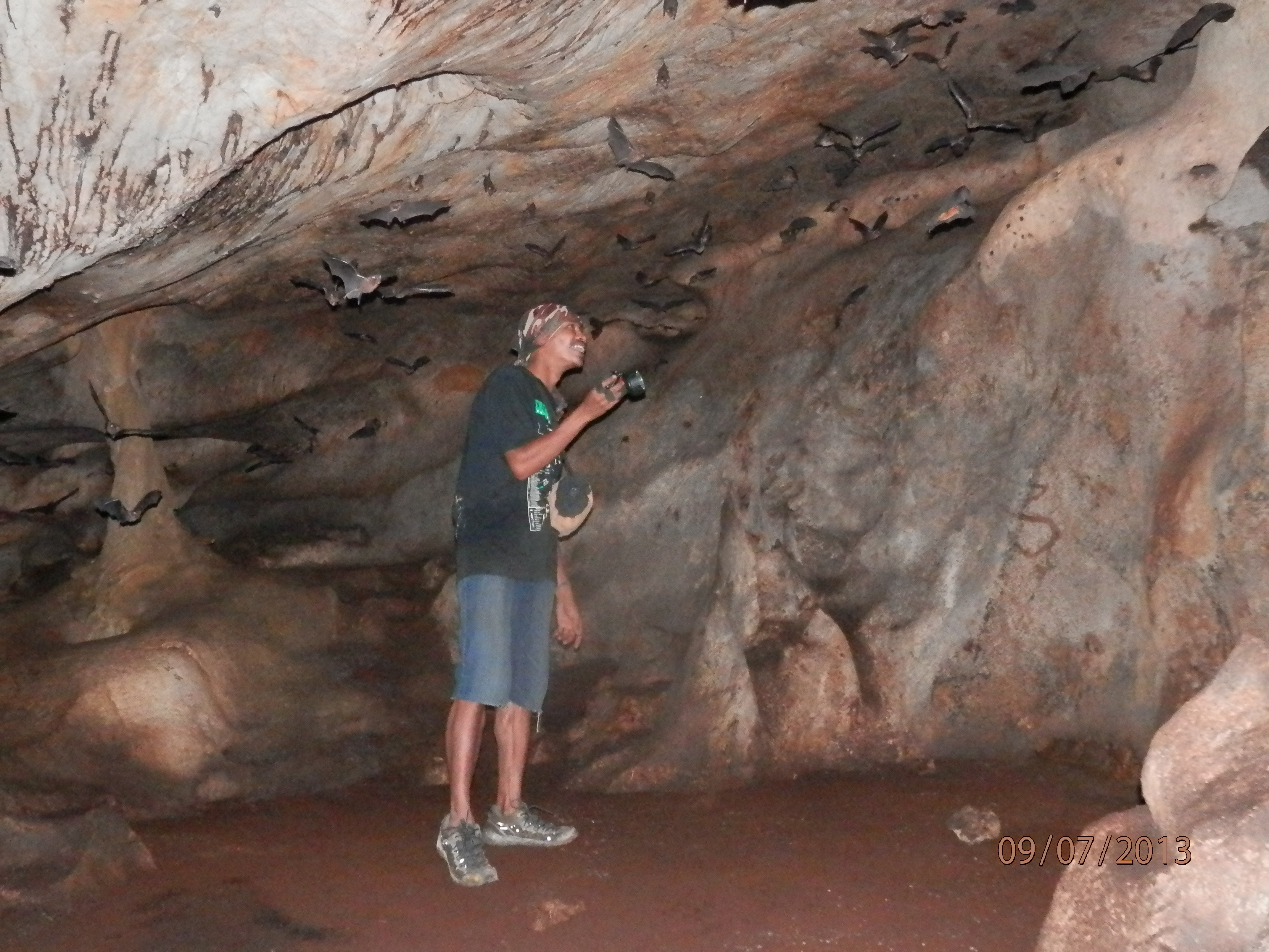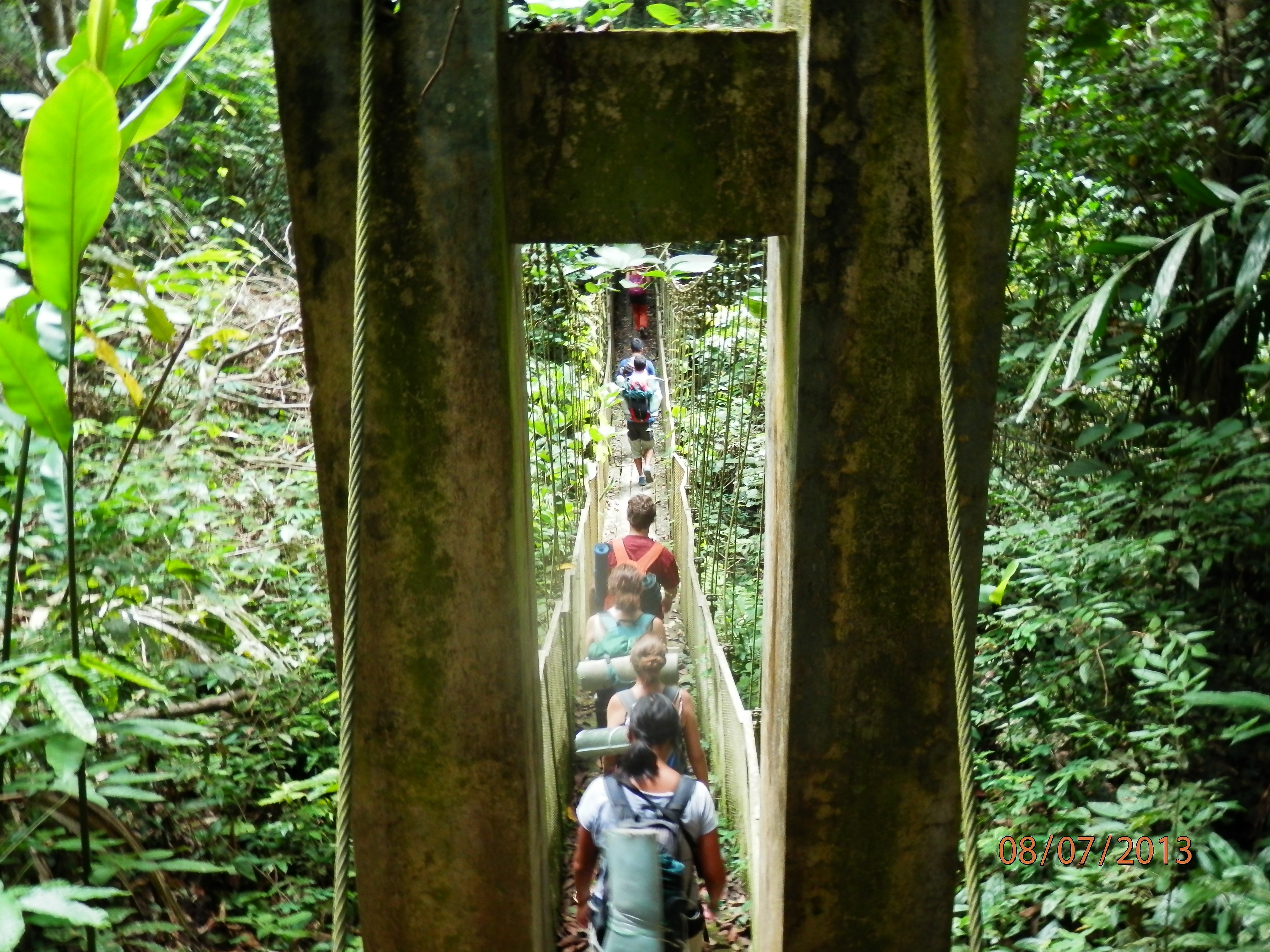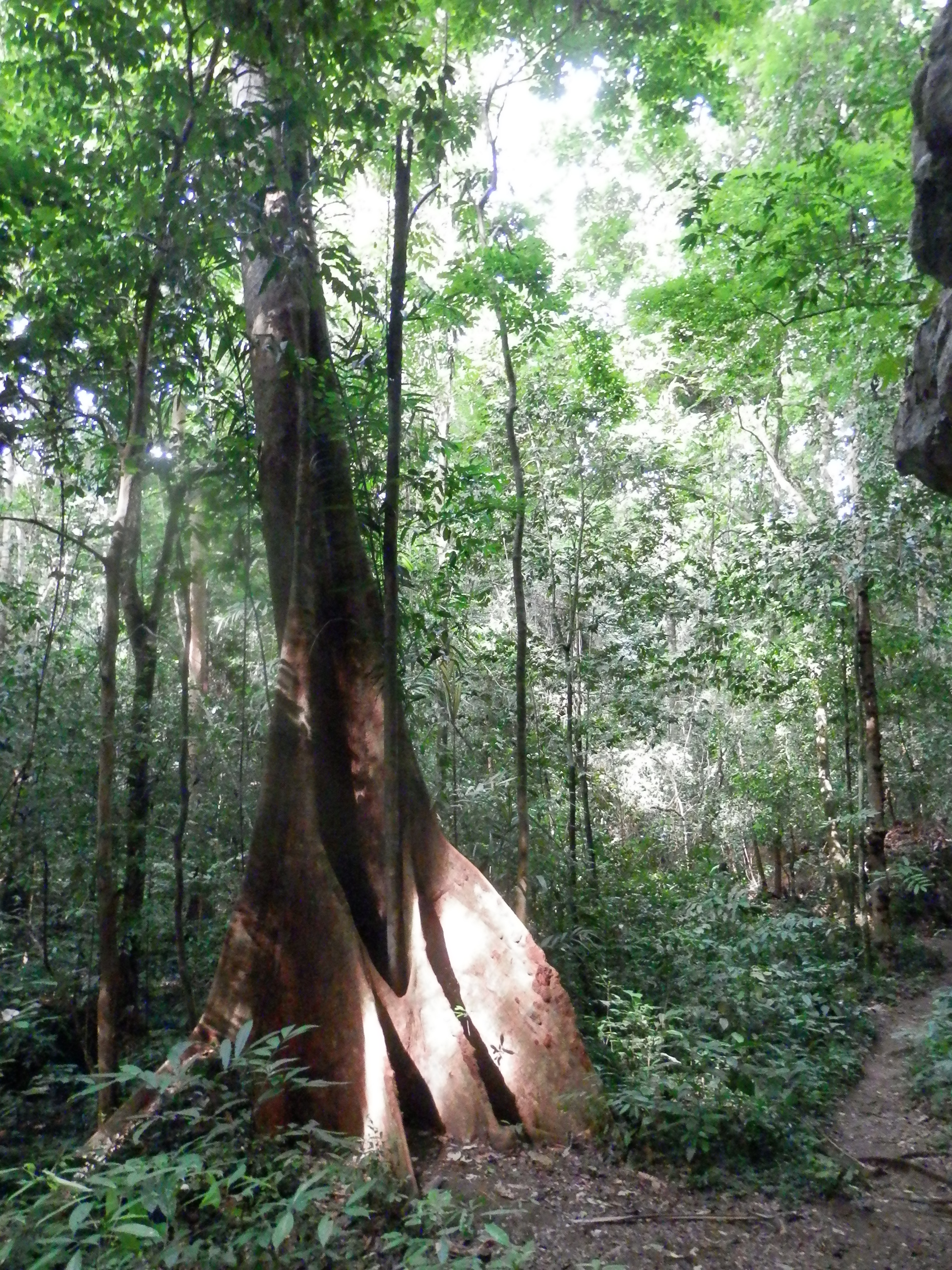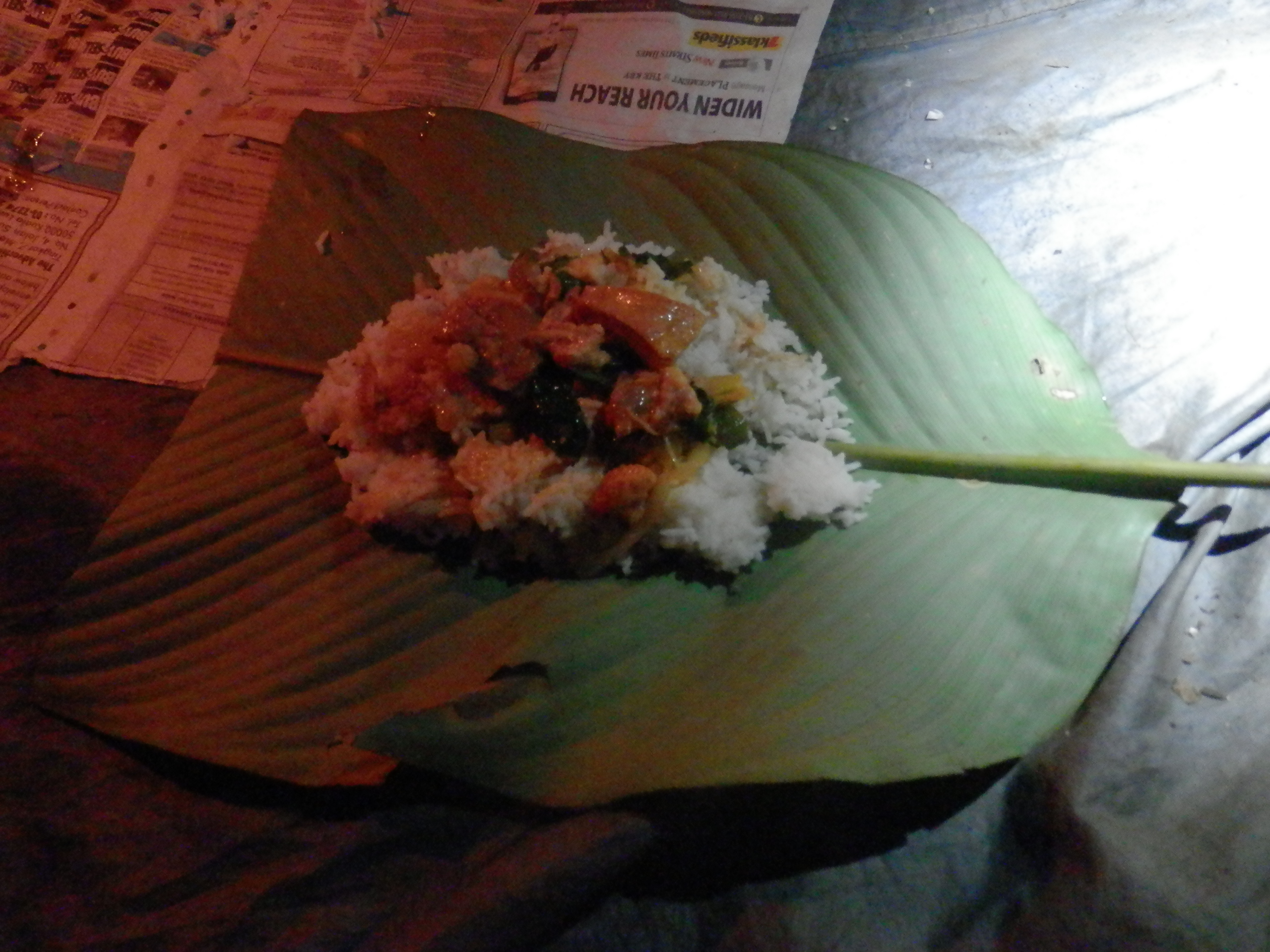 In Taman Negara, the oldest rainforest in the world, I did a two day jungle trek. We spent the night in a cave. The food was professionally  prepared over a campfire by our guide. The meal, rice with vegetables and meat, was served on banana leaves, jungle style! We covered twenty kilometers  in the inner jungle. Challenging, because it’s hot and humid out there and the path keeps going up and down. We have not spotted elephants, tigers or rhinos, but plenty of bats, lizzards, millipedes and leeches!