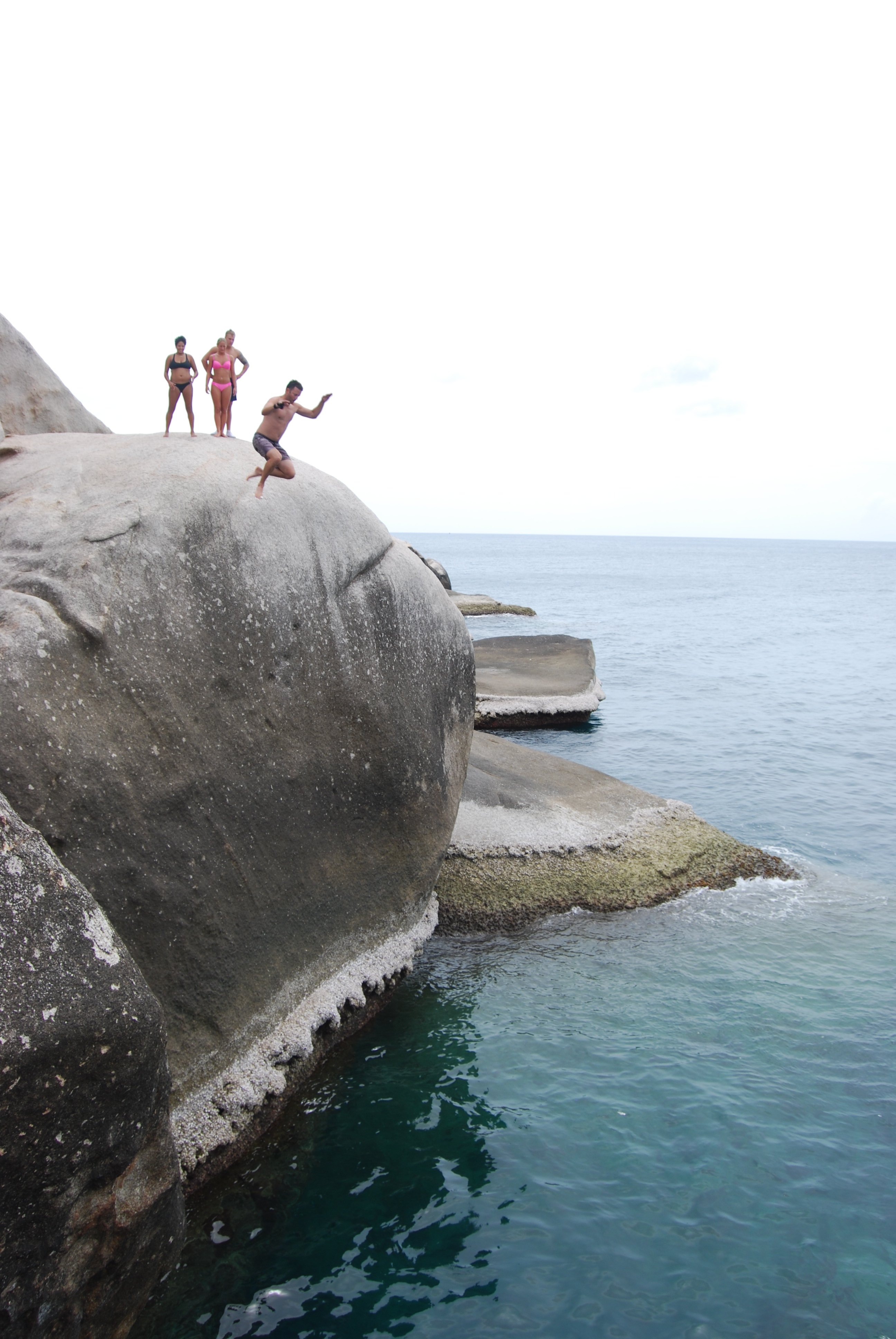 De afgelopen week heb ik doorgebracht op het eiland Koh Tao. Het weer was minder. Het regenseizoen is begonnen en dat is te merken aan de grijze lucht en de dagelijkse stortbuien. Ik heb vooral in de bungalow gezeten, veel gelezen en enkele Tigers gedronken. Tussen de regenbuien door ben ik gaan diepzeeduiken, snorkelen, hiken en ben ik van enkele kliffen gesprongen (3, 9, 12 m). Kicken!