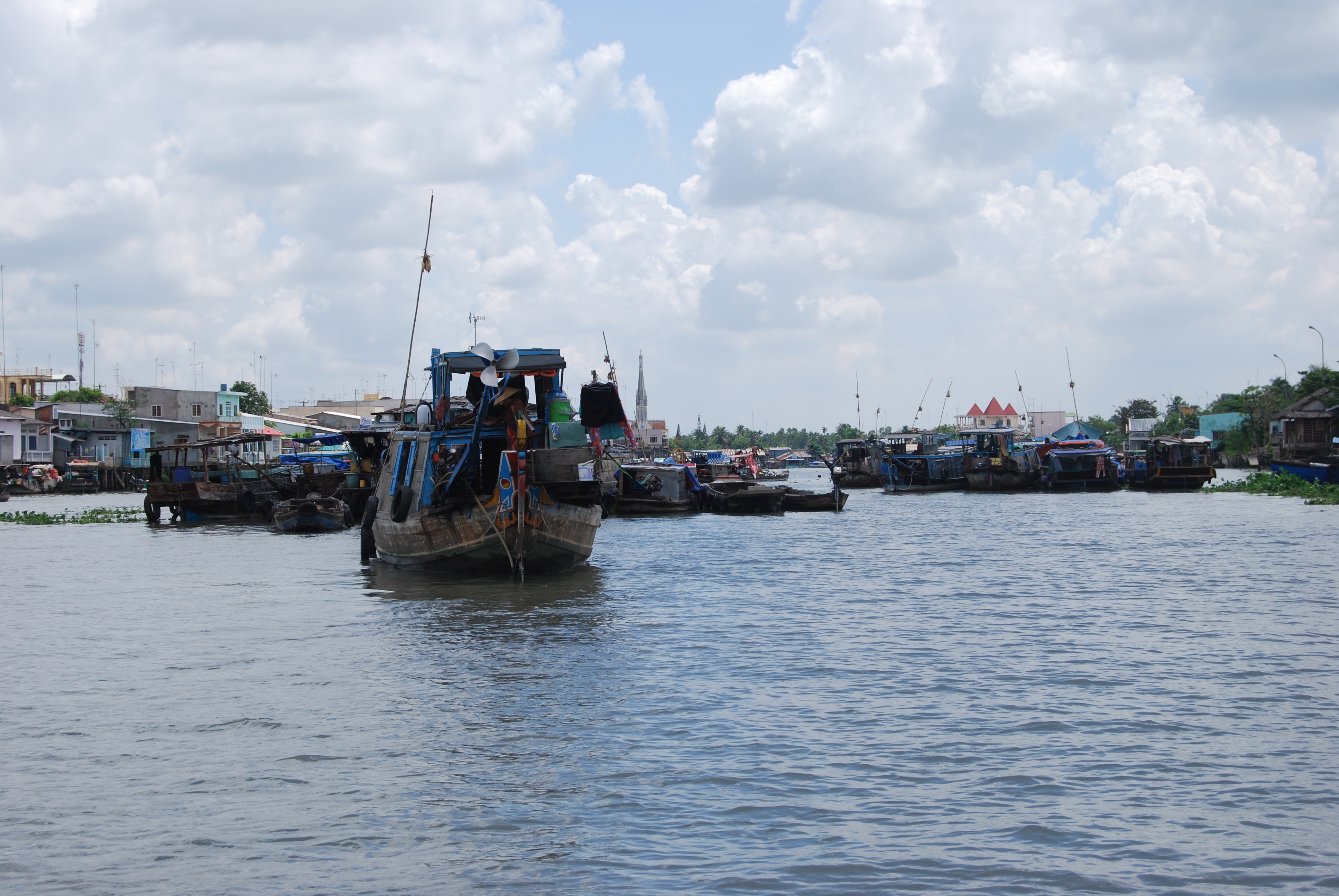 Verschillende mensen vertelden me dat het niet de moeite is om de Mekong Delta te bezoeken. Ik ben toch een kijkje gaan nemen maar was niet onder de indruk. Het is een heel arme regio en de natuur is niet zo mooi. Maar ach, niet alle plaatsen kunnen even top zijn. Nu heb ik in Cai Be toch de kleinste drijvende markt gezien van Ho Chi Minh City en in Chau Doc een drijvend vissersdorp bezocht.